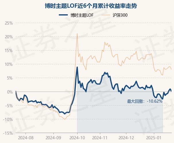 本站消息,1月22日,博时主题LOF最新单位净值为0.996元,累计净值为5.691元,较前一交易日下跌0.8%。历史数据显示该基金近1个月下跌0.99%,近3个月下跌3.39%,近6个月上涨0.1%,近1年上涨8.62%。该基金近6个月的累计收益率走势如下图: